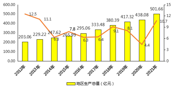 2021年,鲤城区地区生产总值达501.66亿元,连跨3个百亿台阶,2013-2021年年均增长7.8%。其中,除2020年因疫情影响地区生产总值仅增长4.4%外,其余9年均保持6.3%以上的增长速度。2021年鲤城区生产总值增长10.7%,位居全市第3名。在间断零星爆发的新冠疫情的影响下,鲤城区仍能够取得如此成就实属不易。