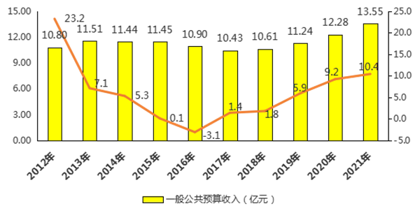 鲤城区经济增长带动财政收入稳步增长。2012年,鲤城区一般公共预算总收入完成20.6亿元。2021年增加到 22.4亿元,2013-2021年年均增长1.5%。2021年,地方一般公共预算收入完成13.55亿元,比2012年增加2.75亿元,年均增长4.1%。全区一般公共预算支出由2012年的9.37亿元提高至2021年的20.34亿元,2013-2021年年均增长9.9%。