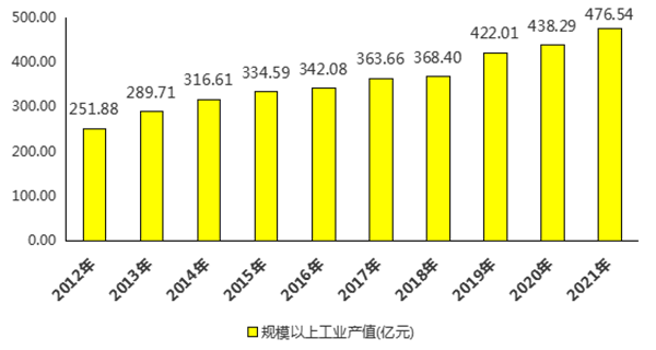 2012年以来,鲤城区强化企业跟踪服务,多渠道帮助企业解决难题,保障了工业经济平稳有序运行。2021年,规上工业企业产值实现476.54亿元,比2012年增加224.66亿元,2013-2021年年均增长8.7%。在企业技术升级、产品质量提升助力下,产业规模进一步壮大,形成纺织鞋服、机械汽配、电子信息三大主导产业。2021年,鲤城区三大支柱产业完成产值409.13亿元,比2012年增加189.03亿元,2013-2021年年均增长7.1%。其中,机械汽配、纺织鞋服、电子通信行业规上工业产值分别完成81.13亿元、260.54亿元、67.46亿元,分别比2012年增加53.64亿元、121.54亿元、13.88亿元,2013-2021年年均增长分别为12.8%、7.2%、2.6%。