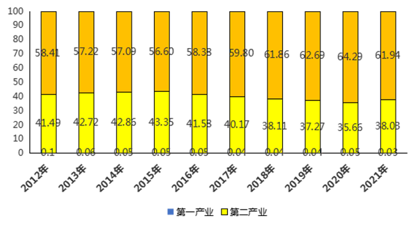 2012年以来,鲤城区始终坚持供给侧结构性改革,促进优势产业升级发展。现代服务业集聚扩量加快,支撑带动作用明显,对全区经济发展贡献持续加大。鲤城区三次产业结构由2012年的0.1:41.49:58.41调整为2021年的0.03:38.03:61.94。服务业占比不断攀升。2021年,第三产业对GDP增长的贡献率为48.6%,拉动GDP增长5.2个百分点,第三产业增加值占GDP比重比2012年提高了3.53个百分点。
