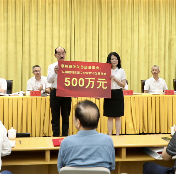随后,大会举行鲤城世遗文化保护与发展基金捐赠仪式。据了解,自鲤城世遗文化保护与发展基金筹备成立以来,广大社会团体、知名企业家积极响应,慷慨捐资,目前已筹集1800万元。该基金将助力鲤城闽南文化生态保护传承、世界遗产及文物保护利用。