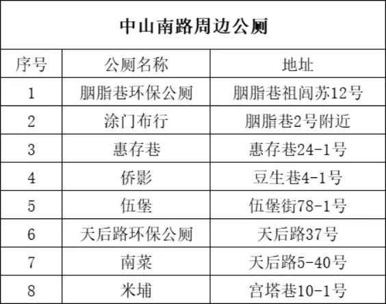 1.认准路牌+巷名:中山南路沿线多数巷口设有指示牌,留意“胭脂巷”“惠存巷”“豆生巷”“伍堡街”“宫塔巷”等关键巷名;