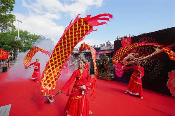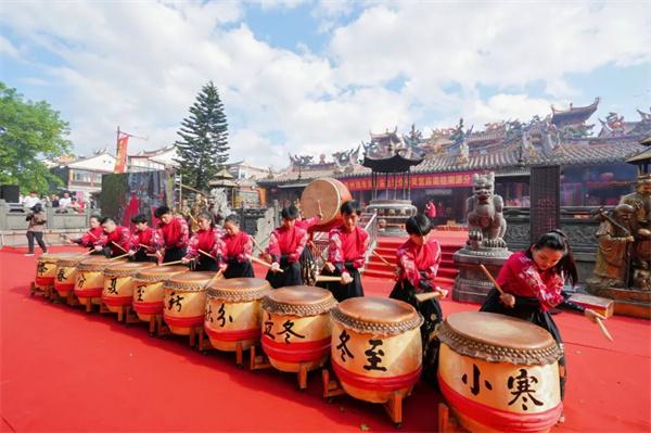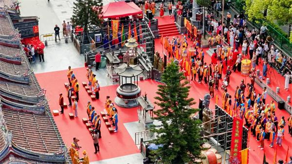 上午8时许,泉州通淮关岳庙广场上热闹非凡,《二十四节令鼓》《鱼跃龙门》《五路财神赐宝》等节目轮番上演,为祭典拉开庄重而喜庆的序幕。随后,庄严肃穆的礼拜关公仪式正式开始,所有人员依循古礼,整齐参拜。现场人头攒动,市民游客纷纷驻足拍照,见证这场跨越海峡的文化盛典。