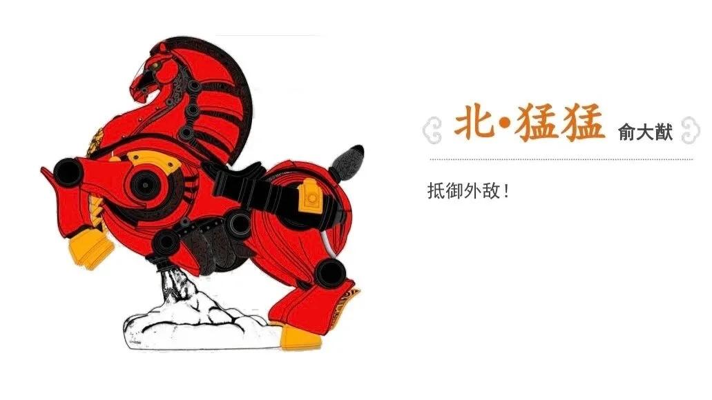 北·猛猛以俞大猷的故事为原型,设计上融合商周青铜纹样、唐马造型、明代军工与赛博机甲元素,呈腾空跃起之势,胸口的狮子图案则源自福船、宝船船头的吉祥纹饰,以及明代抗倭军队盾牌上的图腾。猛猛象征着“守疆与传承”,既彰显了俞大猷抗倭时的勇猛气魄,也寓意泉州人代代传承的“遇强则刚、守护家园”的勇武之志。