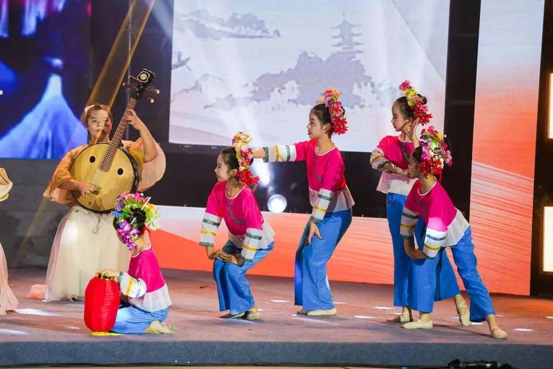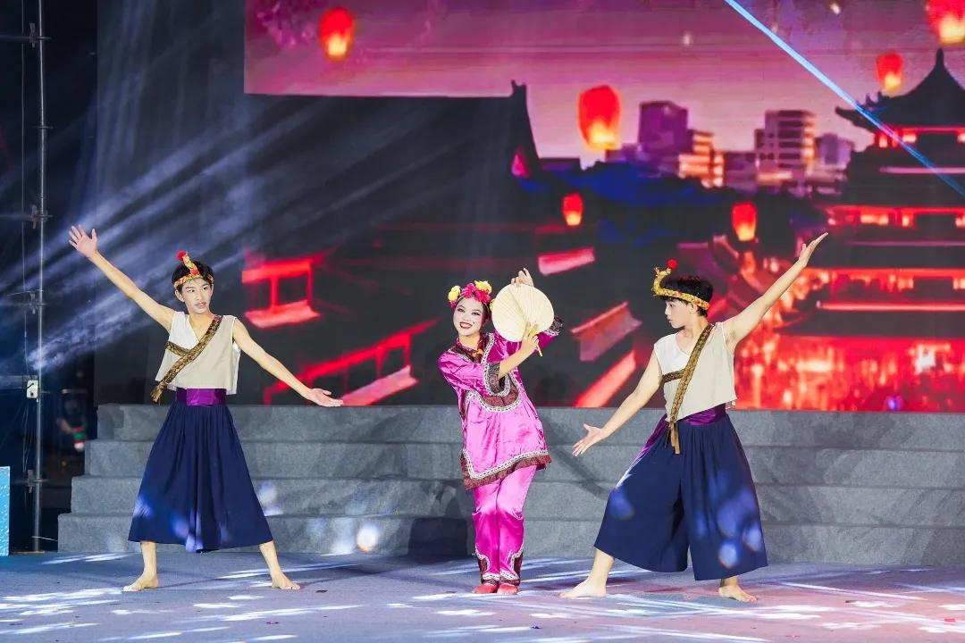 紧接着,泉州市明新华侨中学、泉州市泉中职业中专学校、鲤城区传春幼儿园与泉州市第六中学联袂演绎《招宝侍郎逛元宵》,拍胸舞、火鼎公婆、彩姿、珠秀服饰、刻纸花灯等多项非遗汇聚一堂,令人目不暇接。舞台上,非遗云集,生动演绎五代泉州刺史王延彬治理时期“君臣共庆元宵”的繁华场景。