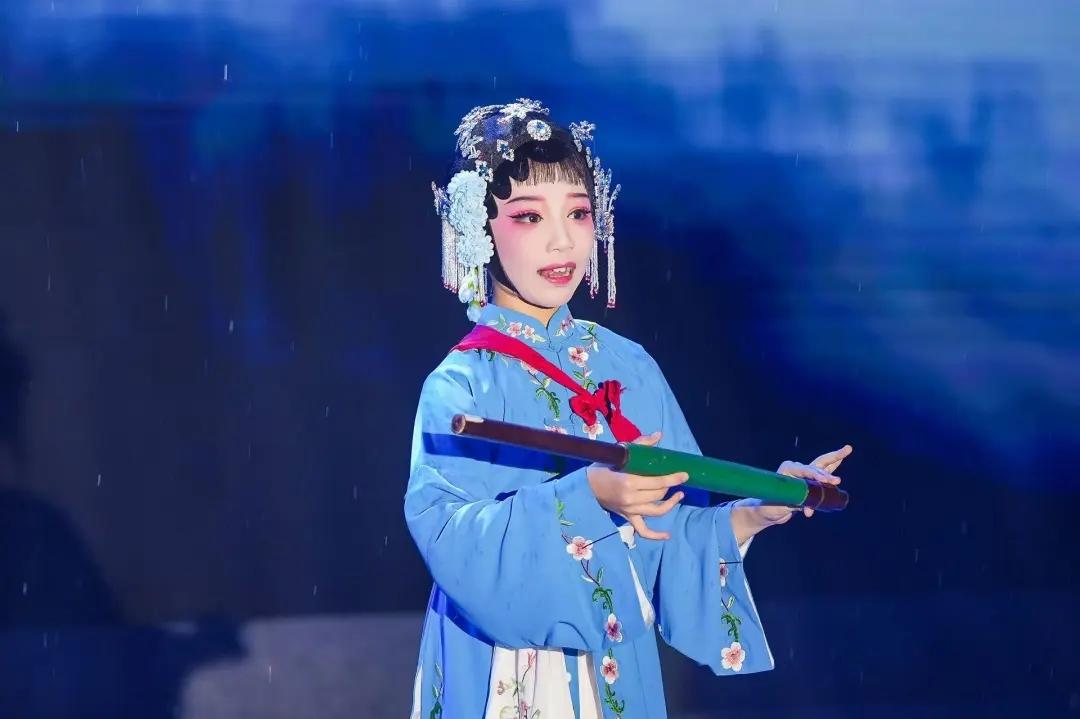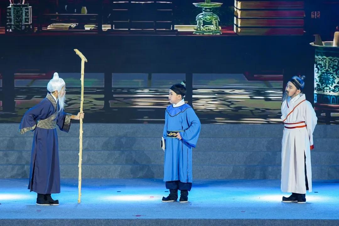 晚上7点30分,演出正式拉开帷幕。“俯仰之间,得此小诗,愿与诸君共赏。”沉稳的声音响起,但见一位身着绯红官服的“朱熹”缓步登台,这位曾多次游历泉州、讲学兴教的南宋大儒,仿佛穿越时空亲临现场。弦管悠扬间,泉州市第七中学与泉州市西隅中心小学的学生以千年南音演绎《春日》,将“万紫千红总是春”的哲思谱入古调。