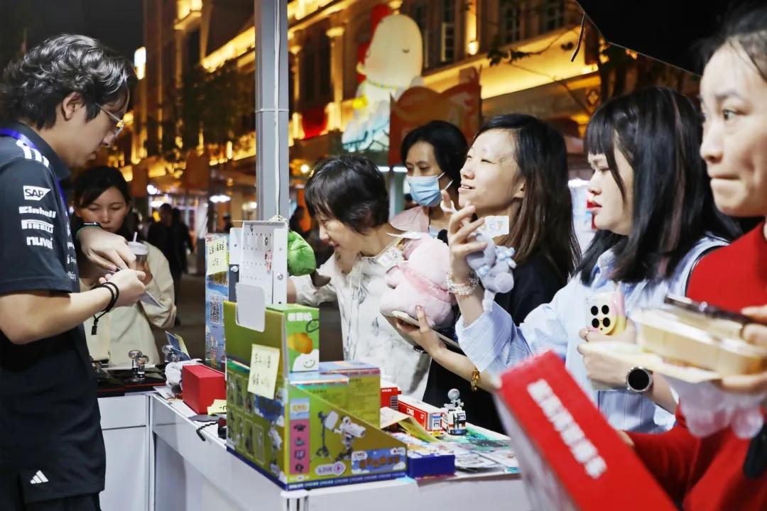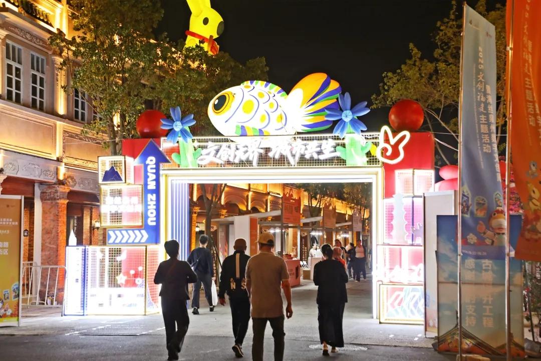 10月22日晚,2025“文创福建”主题活动暨海丝泉州数字文创周在泉州古城正式启幕。古城中山路化身创意舞台,二十多个设计师文创品牌沿街布展,吸引了众多市民游客驻足流连,共同沉浸于一场数字科技与文创艺术交融的视觉盛宴。