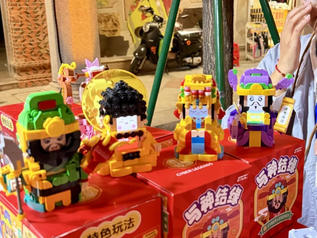 在MOC国潮玩具IP展位,可爱积木、精致摆件、实用冰箱贴等文创产品吸引了不少目光。其中,AI互动积木玩具成为现场“人气王”,产品包含财神、如来、妈祖、月老、文曲星、关帝爷等形象,将拼搭积木与AI技术巧妙结合,实现语音交流互动,让古老的神话人物变成有温度的数字伙伴。