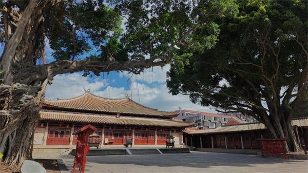 曾经被浓密树冠稍掩的大成殿,如今完整矗立于湛蓝天幕下,重檐翘角、庄重典雅的建筑轮廓清晰可见。微风过处,树叶轻响,仿佛为这座曾经的儒学圣地低吟浅唱。