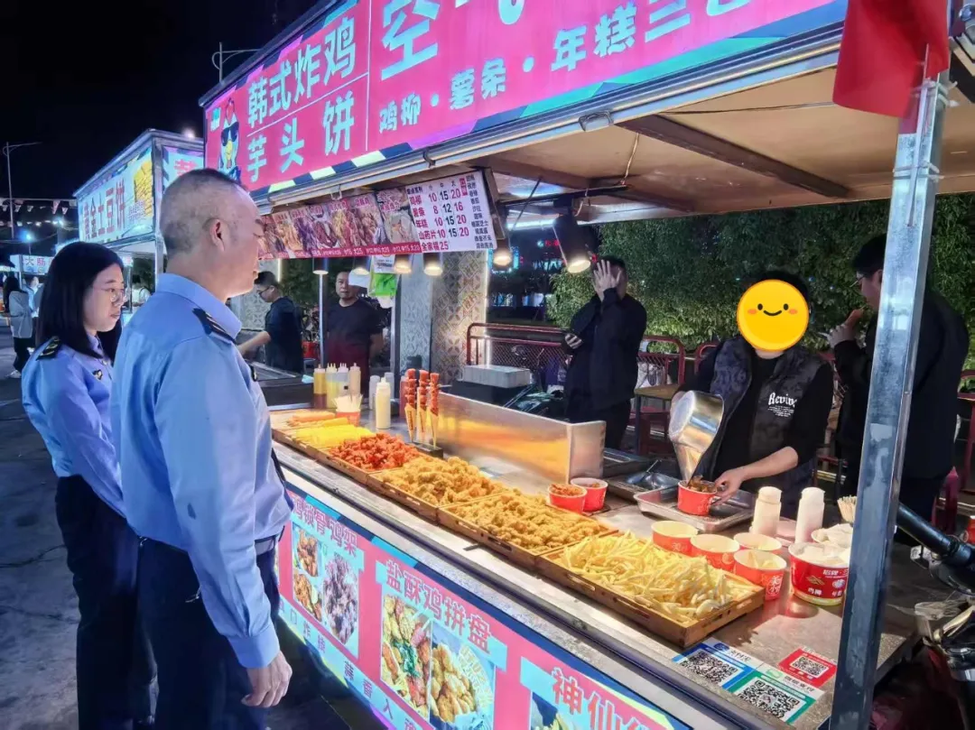 执法人员突击检查高山夜市便民服务点摊贩