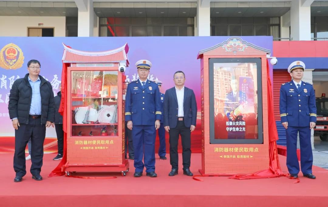 当天,消防便民器材取用点正式启用,并交付开元、鲤中、海滨、临江街道。据了解,消防器材便民取用点外观设计融合闽南古厝特色,兼具初期火灾扑救与消防宣传功能。内部配备逃生面罩、灭火毯、消防栓扳手、水带水枪、灭火器等消防设施器材,外部设有监控、声光报警器及手动报警按钮等装置,侧面还清晰标注多种消防设施器材的使用方法、119报警流程、维护电话等信息。取用点不上锁,从侧面开启,开门即取即用。