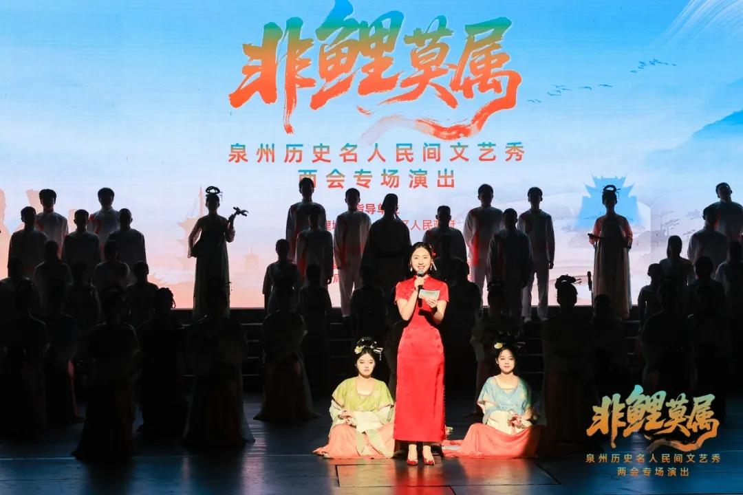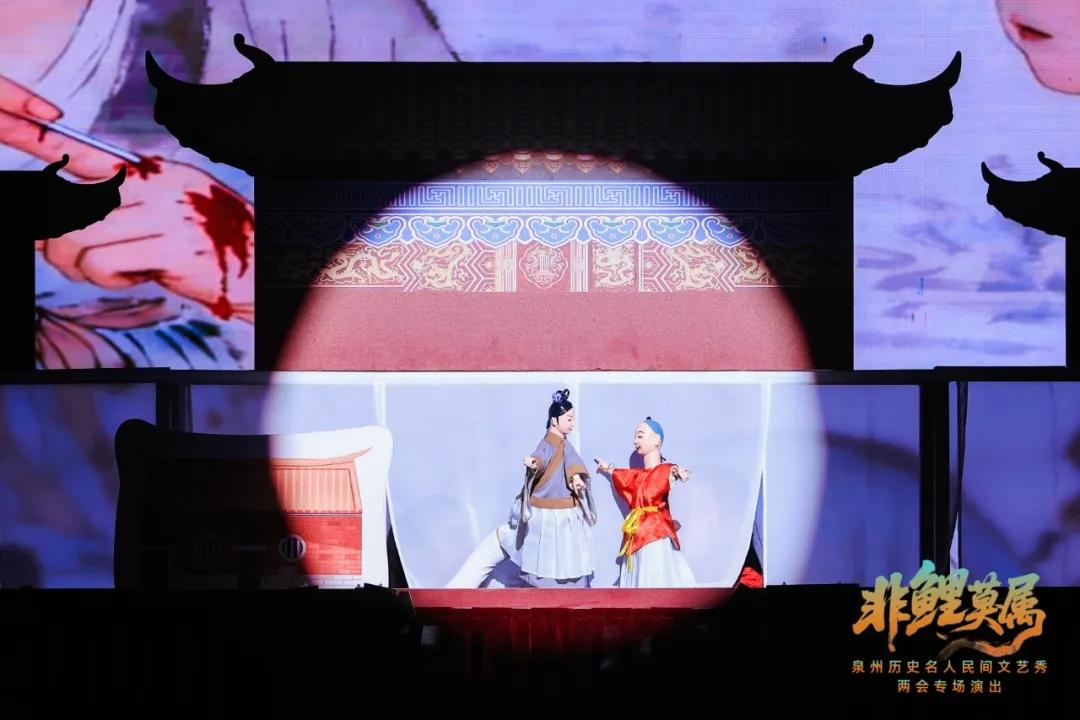 在鲤城区两会召开之际,12月29日晚上,“非鲤莫属”泉州历史名人民间文艺秀两会专场演出在泉州影剧院精彩上演。演出通过多彩多元的非遗形式,对鲤城千年文脉进行了精妙转译,带领与会人大代表、政协委员及市民观众,完成了一次与泉州先贤跨越时空的对话。