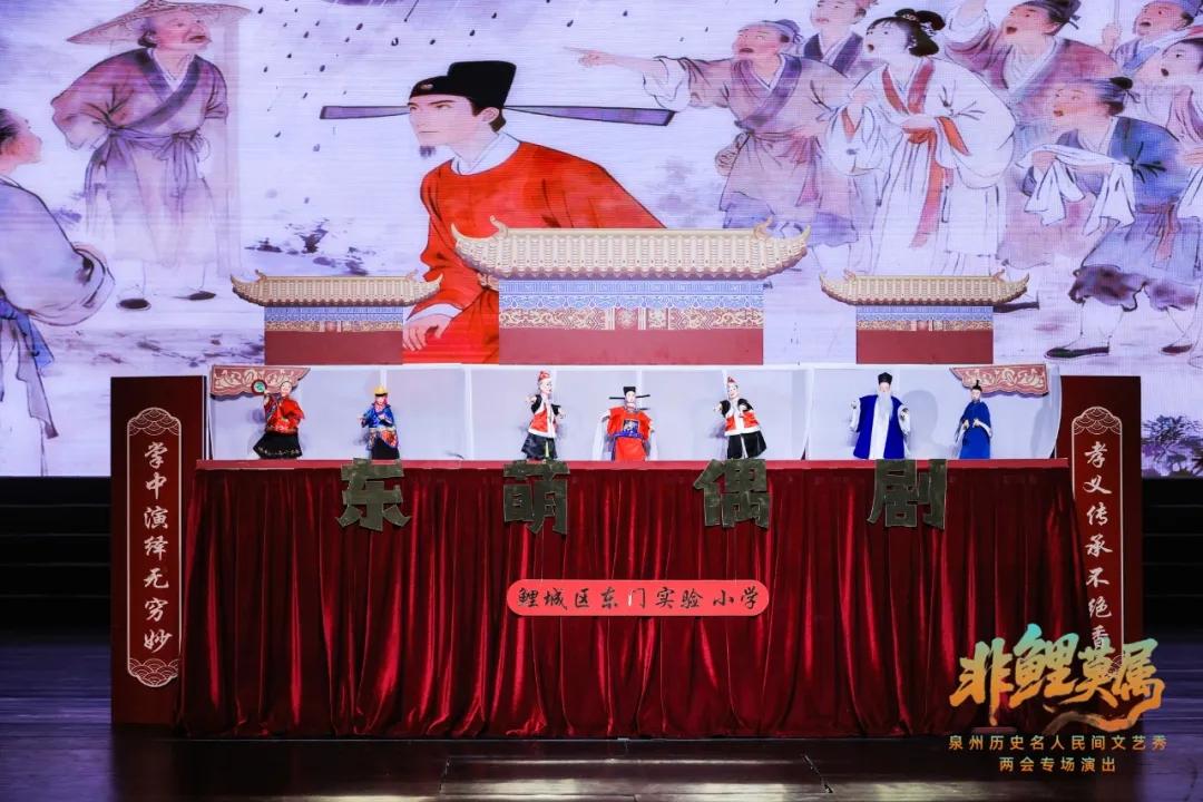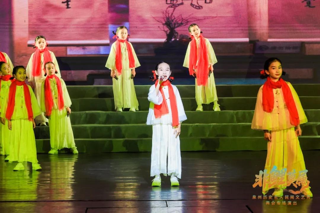 此次演出由泉州市第七中学、泉州市通政中心小学、泉州市西隅中心小学、泉州市第二中心小学、泉州市新隅小学等多所中小学学生担纲主演,是鲤城区“非遗进校园”成果的一次集中检阅。