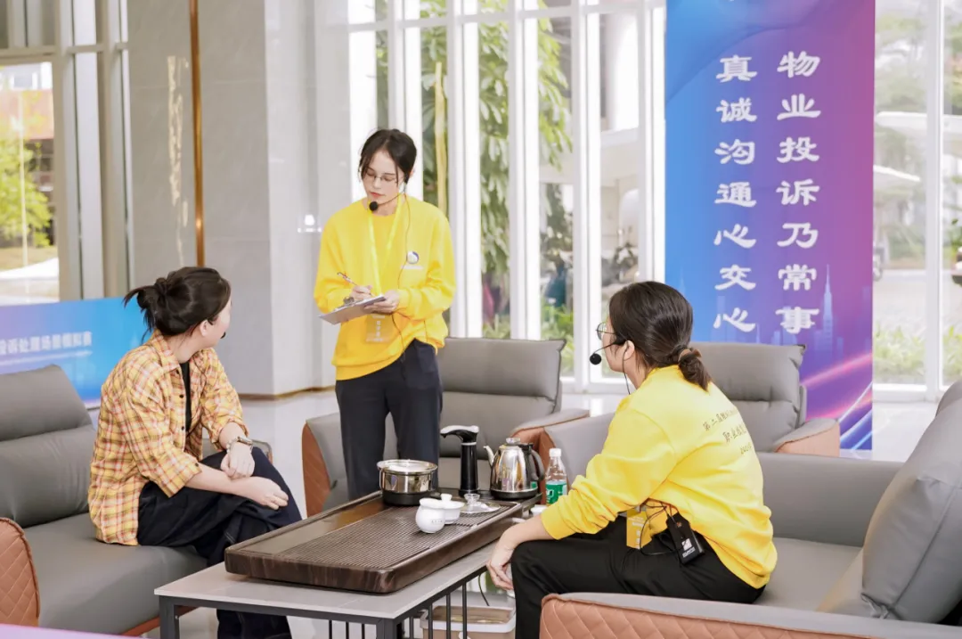 物业服务行业职业技能竞赛中,现场通过场景模拟物业投诉处理现场