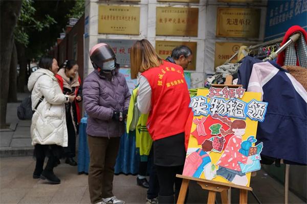 揭牌仪式一结束,志愿服务活动随即展开。在“红领巾失物认领暖心行动”中,大家将学校失物招领处的水杯、衣物、红领巾、学习用品、跳绳等物品细致整理、分类摆放,在学校大门围墙两侧设置认领区,方便家长快速找到孩子的失物;在“移风易俗志愿行,文明风尚迎新春”活动中,孩子们提前书写的“福”字饱含暖意,老师和家长志愿者们带领学生,在放学时段向家长们分发移风易俗过新春倡议书,将满满的新春祝福与文明风尚一同传递。