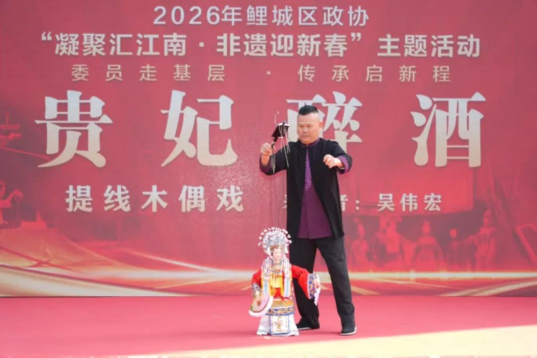随后,“非遗新春”文化展演拉开帷幕。舞蹈《策马奔腾》、吉他弹唱《朋友》、二胡齐奏《赛马》、提线木偶戏《贵妃醉酒》、小组唱《蓝蓝泉州湾》、闽南语歌曲《鲤赞》、民俗舞蹈《招宝侍郎逛元宵》等节目轮番上演,为在场市、区两级政协委员和园区企业员工献上一场充满闽南风韵的文化盛宴。
