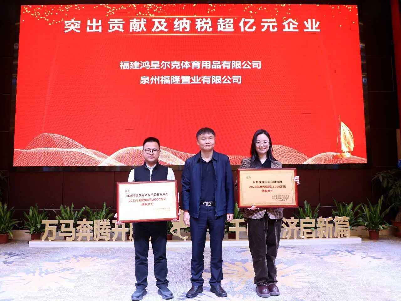 活动中,金龙街道还为福建鸿星尔克体育用品有限公司、泉州福隆置业有限公司等为经济发展作出突出贡献及纳税超百万的企业颁发牌匾,鼓励企业继续发挥示范引领作用,抢抓发展机遇,在推动自身做优做强的同时,积极履行社会责任,与街道携手共创美好未来。