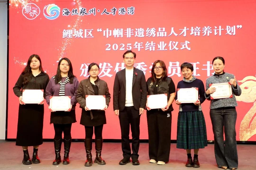 活动现场,鲤城区巾帼非遗绣品人才培养计划举行2025年度结业仪式。黄菲菲、陈秋白、梁巧李等6名学员凭借扎实的功底与钻研精神获评“优秀学员”。