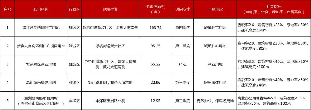 繁荣片区商业用地占地65.22亩,容积率3.3,紧邻鲤城万达广场、“海丝号”综合体项目等商业载体,商业氛围浓厚,发展潜力巨大;高山娱乐康体用地占地22.96亩,容积率2.0,可依托成熟生活圈打造特色康体文旅项目;宝洲路商服项目用地占地12.95亩,容积率5.0,位于丰泽区成熟片区,适合打造集商贸、餐饮、办公于一体的商业综合体。