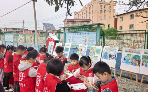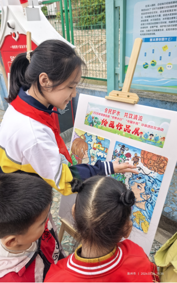 “渠畔水学堂”的最后一站是儿童画展。常泰街道提前一周向明新小学征集而来的50余幅“水”主题画作在公园整齐展出。孩子们用稚嫩的笔触描绘出清澈的河流、美丽的地球、节水的场景……纯真的童心与护水的初心交相辉映,吸引了许多居民驻足观看。