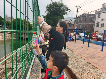 一个个普普通通的塑料瓶,在孩子们的巧手下变成了独一无二的“环保漂流瓶”。大家用麻绳将瓶子系好,悬挂在南高渠的护栏上。微风吹过,瓶子轻轻摇曳,孩子们的心愿和祝福仿佛也随风飘向南高渠。