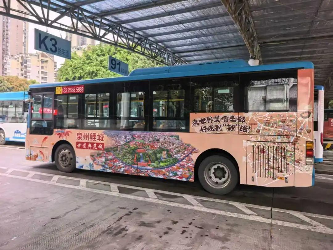 近日,一辆辆披上“新装”的公交车穿梭于福州市区主要干道,车身醒目位置印有“泉州鲤城 世遗典范城”“世界美食之都”等字样,中山路、开元寺、钟楼、刺桐花等古城元素点缀其间,成为展示鲤城魅力的“流动名片”。