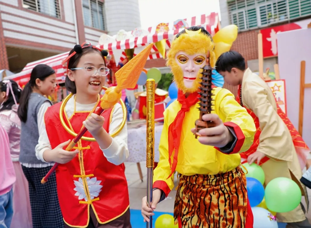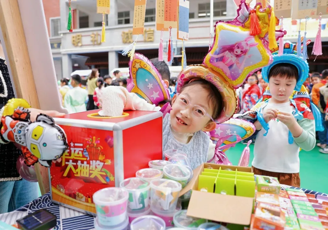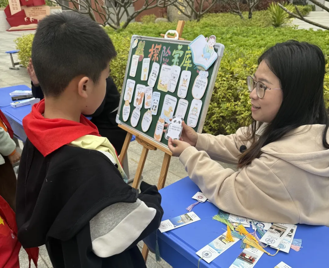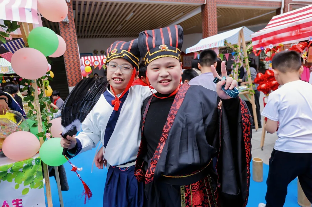 据介绍,此次图书市集结合各年段学生年龄特点,围绕童话、科幻、红色经典等主题打造特色摊位,由各班级自主设计摊位名称和游戏形式,并设置趣味游戏、角色扮演、书签DIY、活字印刷拓印等互动环节,让孩子们在人物扮演、闯关答题和情节表演中,亲身体会文学魅力,轻松积累阅读知识。