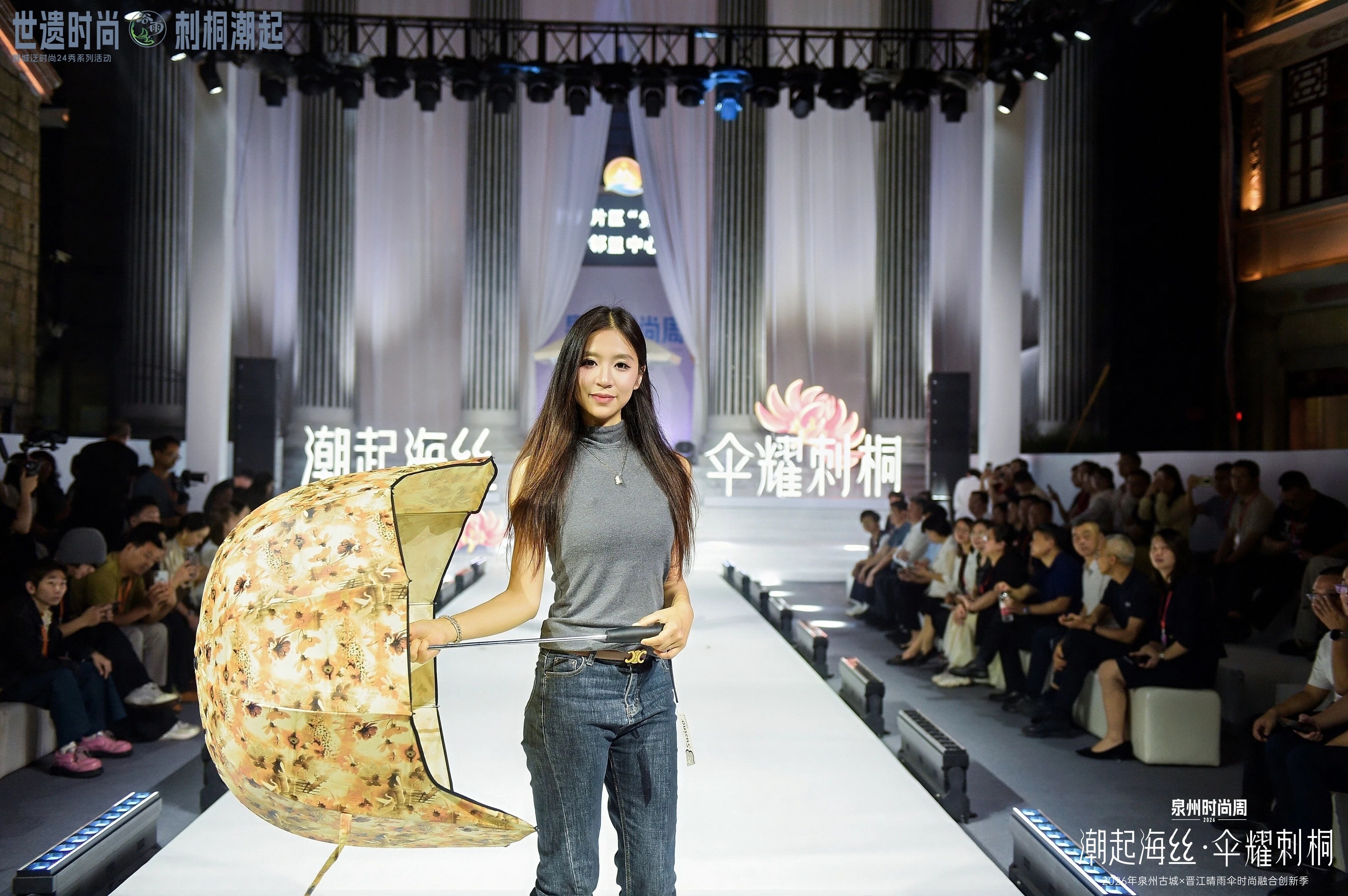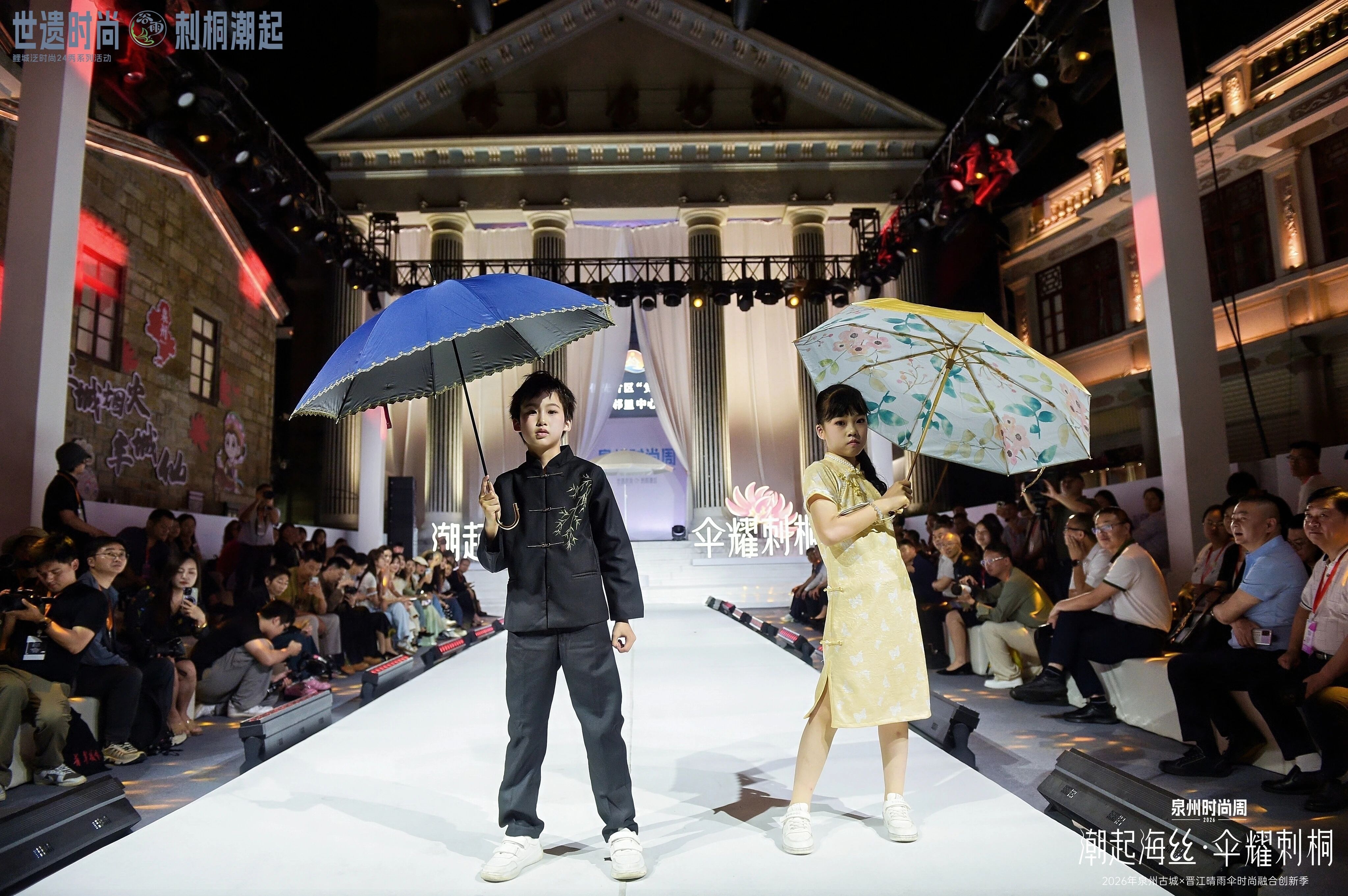据介绍,本次大秀分为“伞耀刺桐·艺承千年”“伞耀刺桐·好物风生”“伞耀刺桐·韵彩流光”“伞耀刺桐·值此伞亮”四大篇章,集中展示了多款特色伞具,涵盖日常实用、潮流时尚、国潮文创、科技创新等多个类别。从日常休闲到高定系列,从度假文艺到新中式风,风格各异,一把小小的晴雨伞,演绎着从古城日常走向世界舞台的海丝故事,折射出泉州时尚产业的澎湃活力。