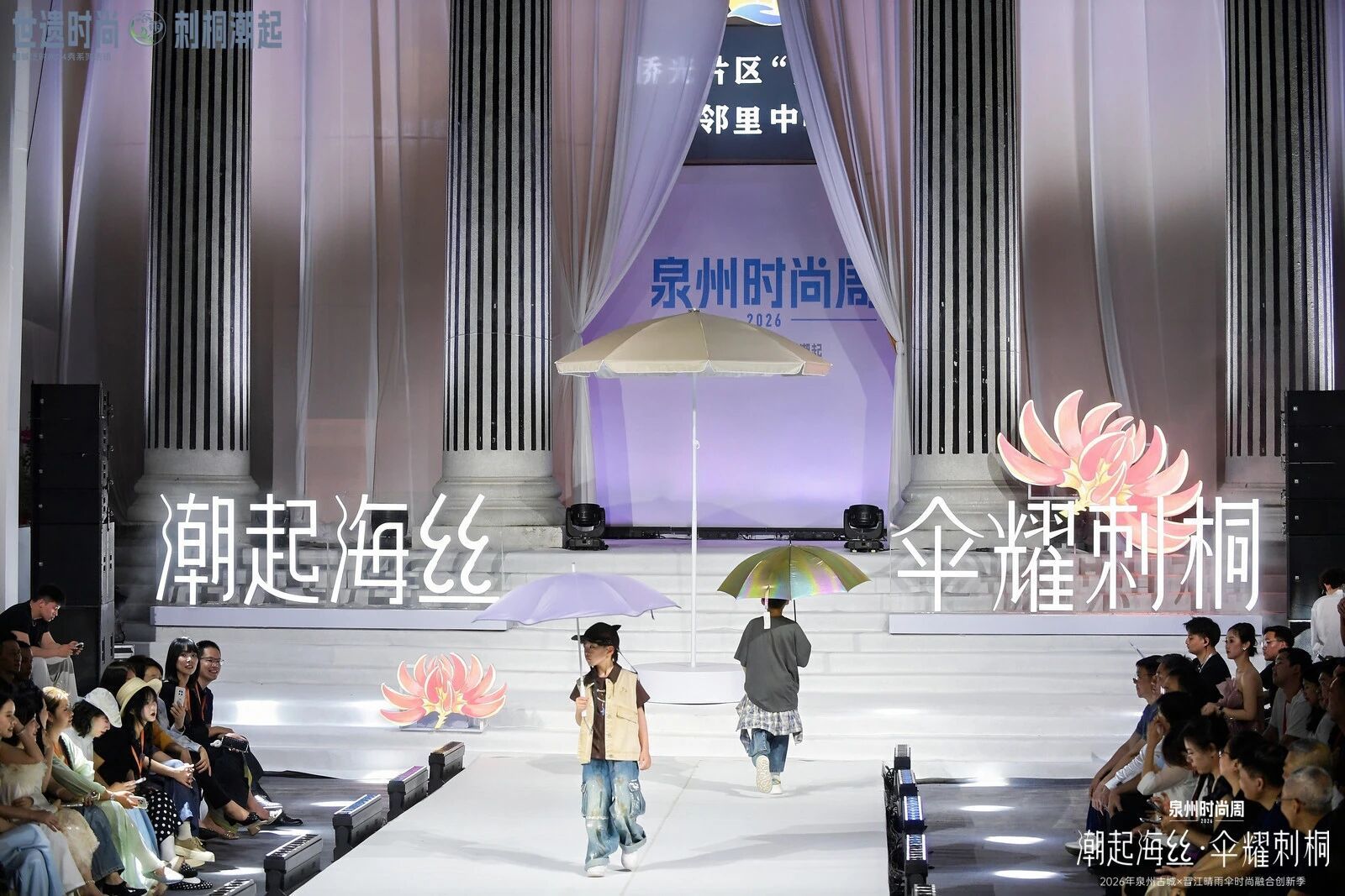 作为2026泉州时尚周系列活动之一,本次活动紧扣海丝文化与特色产业融合发展主线,依托鲤城深厚的世遗文化资源,以泛时尚24秀之谷雨为题,联动晋江晴雨伞产业优势,通过时尚走秀、文艺表演等丰富形式,集中展现了传统制伞产业在文旅融合、时尚设计、科技创新三大领域的亮眼成果,也为古城文旅注入了新的时尚活力。